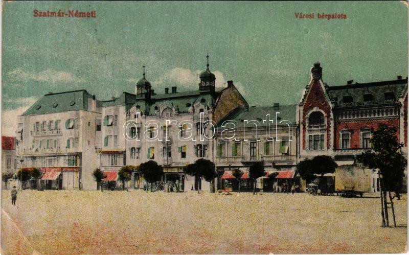 Szatmárnémeti, Satu Mare; Városi bérpalota / shops + "1940 Szatmá... https://www.darabanth.com/de/506-Fernauktion/506.0/Ansichtskarten/Siebenburgen~112/Szatmarnemeti-Satu-Mare-Varosi-berpalota-shops-plus-1940-Szatmarnemeti-visszatert-So-Stpl~II3427906
