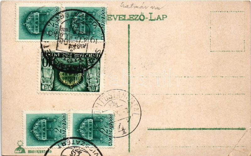 Beschreibung: Szatmárnémeti, Satu Mare; Városi bérpalota / shops + "1940 Szatmárnémeti visszatért" So. Stpl (EM)
