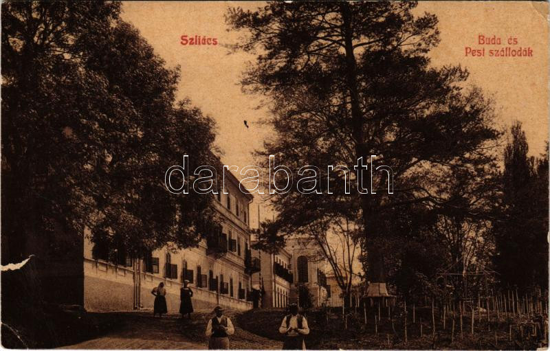 1907 Szliács, Sliac; Buda és Pest szállodák. Kerekes Miklós kiadása 98... https://www.darabanth.com/de/506-Fernauktion/506.0/Ansichtskarten/Slowakei~113/1907-Szliacs-Sliac-Buda-es-Pest-szallodak-Kerekes-Miklos-kiadasa-981-hotels-spa-szakad~II3428667