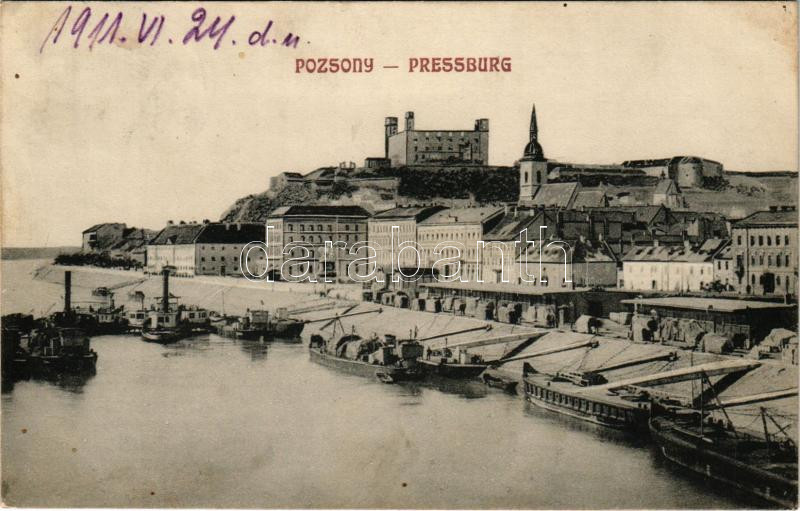 1911 Pozsony, Pressburg, Bratislava; látkép, vár, kikötő, gőzhajók / g... https://www.darabanth.com/de/506-Fernauktion/506.0/Ansichtskarten/Slowakei~113/1911-Pozsony-Pressburg-Bratislava-latkep-var-kikoto-gozhajok-general-view-castle-po~II3428690