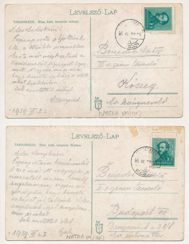 1939 Tardoskedd, Tvrdosovce - 2 db RÉGI képeslap: római katolikus temp... https://www.darabanth.com/de/506-Fernauktion/506.0/Ansichtskarten/Slowakei~113/1939-Tardoskedd-Tvrdosovce-2-db-REGI-kepeslap-romai-katolikus-templom-belso-fooltar-2-p~II3429493
