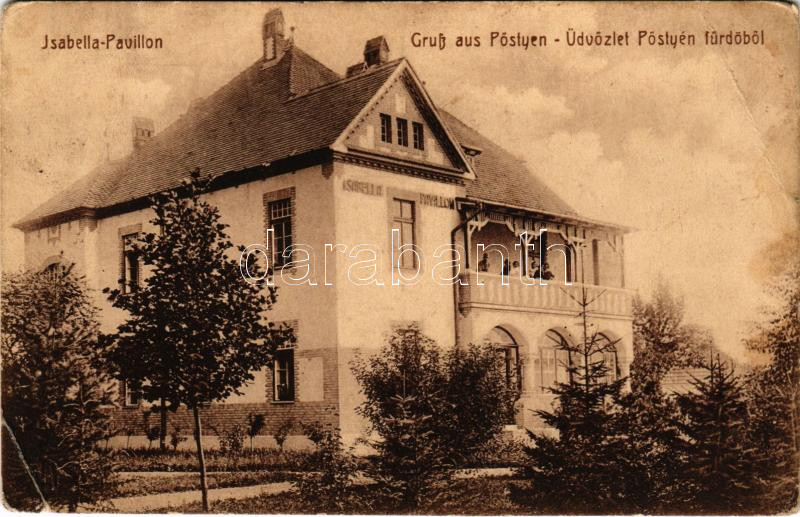 Pöstyén, Piestany; Izabella pavilon. Schreiber Gyula kiadása / Isabell... https://www.darabanth.com/de/506-Fernauktion/506.0/Ansichtskarten/Slowakei~113/Postyen-Piestany-Izabella-pavilon-Schreiber-Gyula-kiadasa-Isabella-Pavillon-spa-pavilion-~II3430976
