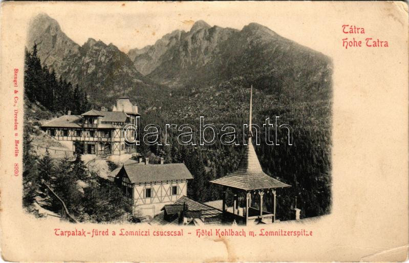 Tátra, Magas-Tátra, Vysoké Tatry; Tarpatak füred a Lomnici csúccsal / ... https://www.darabanth.com/de/506-Fernauktion/506.0/Ansichtskarten/Slowakei~113/Tatra-Magas-Tatra-Vysoke-Tatry-Tarpatak-fured-a-Lomnici-csuccsal-Hotel-Kohlbach-m-Lomnitz~II3428747