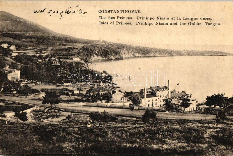 Constantinople, Isles of Princes, Prinkipo Nizam, Golden Tongue https://www.darabanth.com/de/506-Fernauktion/506.0/Ansichtskarten/Turkei~165/Constantinople-Isles-of-Princes-Prinkipo-Nizam-Golden-Tongue~II1239443