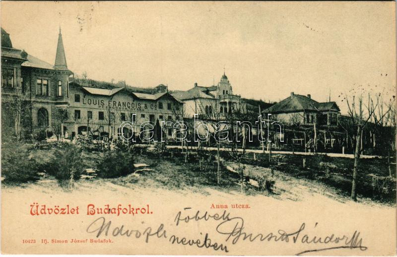 1900 Budapest XXII. Budafok, Anna utca, Louis Francois & Co. p... https://www.darabanth.com/de/506-Fernauktion/506.0/Ansichtskarten/Ungarn~111/1900-Budapest-XXII-Budafok-Anna-utca-Louis-Francois-amp-Co-pezsgogyara-Ifj-Simon-Jozsef-k~II3433427
