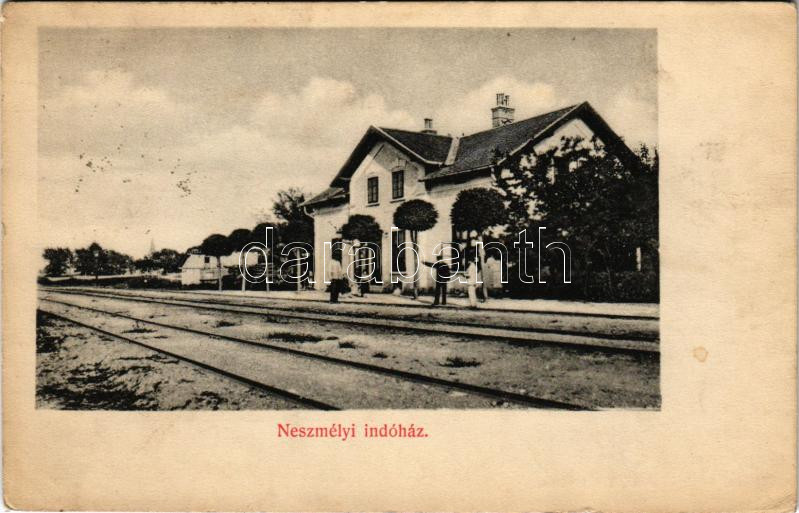 1909 Neszmély, indóház, vasútállomás. Nobel Adolf kiadása (EK) https://www.darabanth.com/de/506-Fernauktion/506.0/Ansichtskarten/Ungarn~111/1909-Neszmely-indohaz-vasutallomas-Nobel-Adolf-kiadasa-EK~II3428776