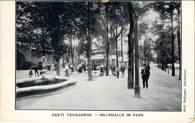 Budapest II. Császár fürdő, kerti tejcsarnok. Athenaeum 8419. https://www.darabanth.com/de/506-Fernauktion/506.0/Ansichtskarten/Ungarn~111/Budapest-II-Csaszar-furdo-kerti-tejcsarnok-Athenaeum-8419~II3433416