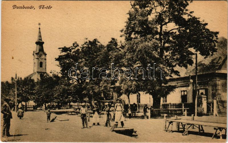 Dombóvár, Fő tér, templom, piac. Vasúti levelezőlapárusítás 19. sz. - ... https://www.darabanth.com/de/506-Fernauktion/506.0/Ansichtskarten/Ungarn~111/Dombovar-Fo-ter-templom-piac-Vasuti-levelezolaparusitas-19-sz-1918-EK~II3415831