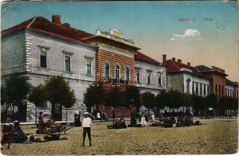 Beschreibung: Karcag, Fő tér, piac, étterem és kávéház. Vasúti levelezőlapárusítás 244. (EB)