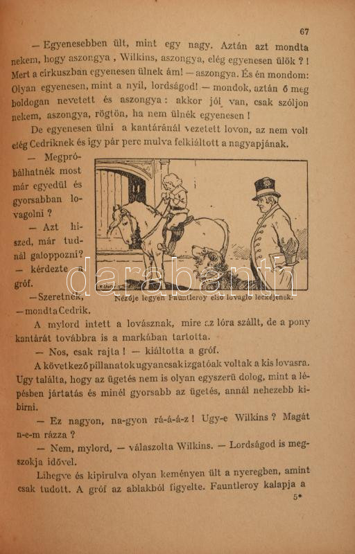 Burnett, [Frances Hodgson]: A kis lord. K. Sávely Dezső rajzaival. Bp., [1926], Tolnai, 122+(6) p. Kiadói papírkötés, kissé viseltes, sérült borítóval és gerinccel, helyenként kissé foltos lapokkal.