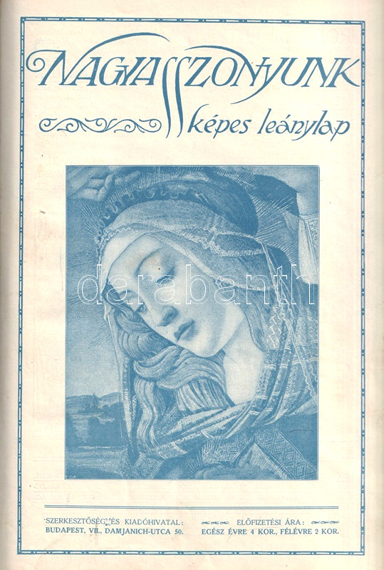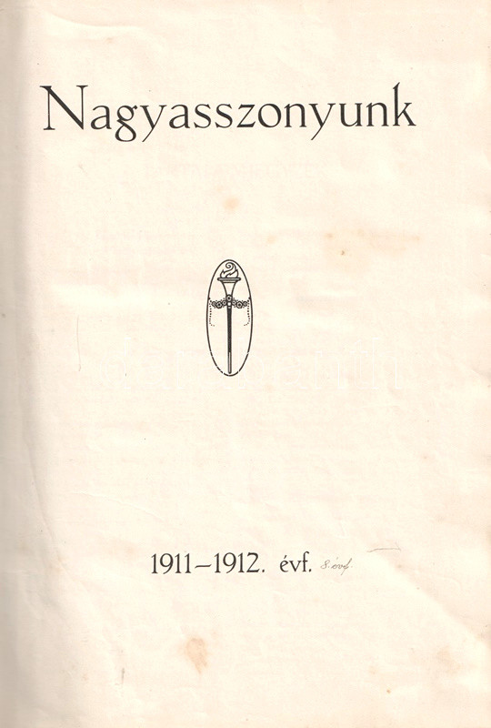[Folyóirat] Nagyasszonyunk. Képes leánylap. Szerkeszti: Orbán Dezső. Megjelenik évente tízszer. VIII. évfolyam, 1-10. szám. (1911. szeptember 1. - 1912. június 1.) [Teljes évfolyam, egybekötve.]