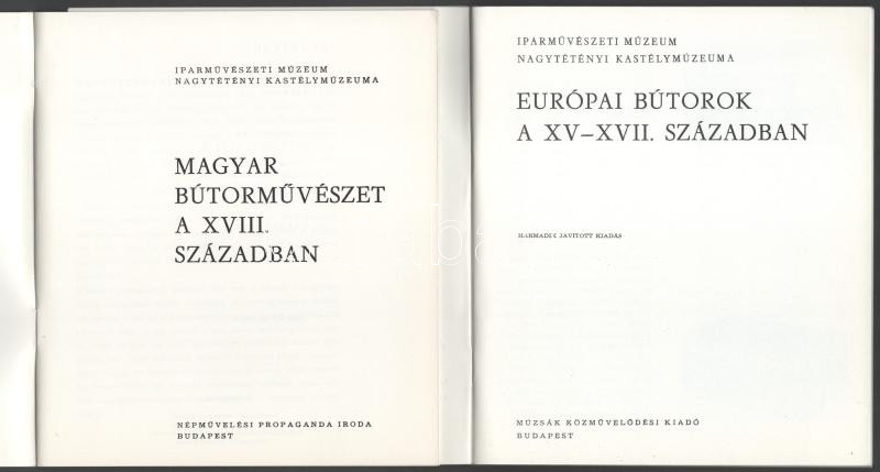 2 db - Európai bútorok a XV-XVII. században. 1982. + Magyar bútorművészet a XVIII. században. Nagytétényi Kastélymúzeum. 1984. Kiadói papírkötés, jó állapotban.