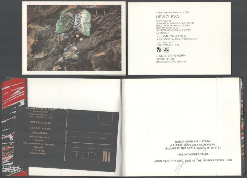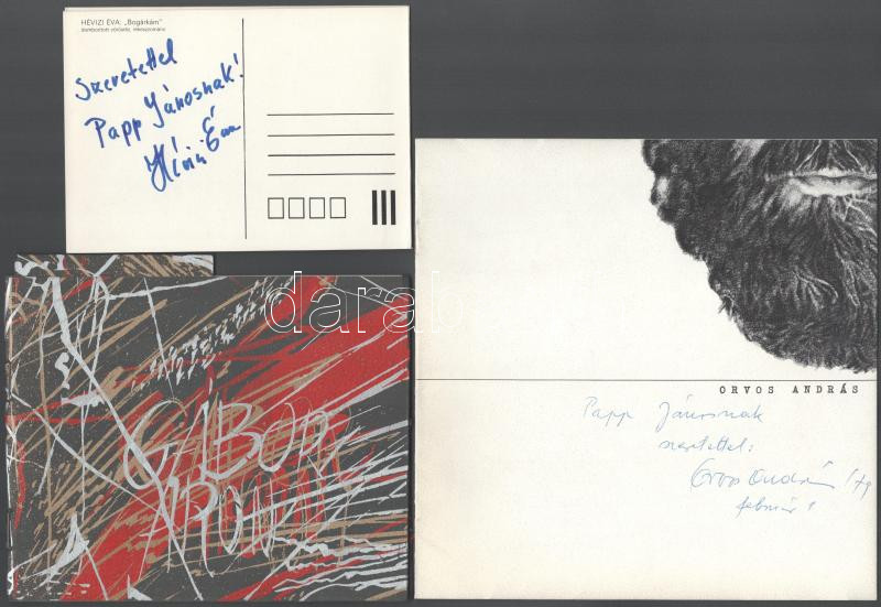 Beschreibung: 3 db művészeti katalógus, 2 db Papp János festőművésznek dedikált, egy aláírt. Kettőben meghívóval is.