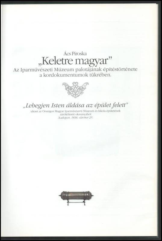 Ács Piroska: Az Iparművészeti Múzeum palotájának építéstörténete. Bp., 1996, Iparművészeti Múzeum, 72 p. Gazdag képanyaggal illusztrálva. Kiadói kartonált papírkötés.