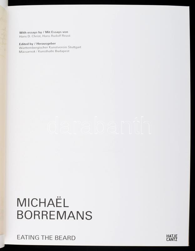 Michael Borremans: Eating the Beard. With essay by / Mit Essays von Hans D. Christ, Hans Rudolf Reust. Edited / Hrsg. Württembergischer Kunstverein Stuttgart, Műcsarnok Budapest. Ostfildern, 2011, Hatje Cantz, 223+1 p. Német nyelven. Gazdag képanyaggal illusztrált. Kiadói kartonált papírkötés.