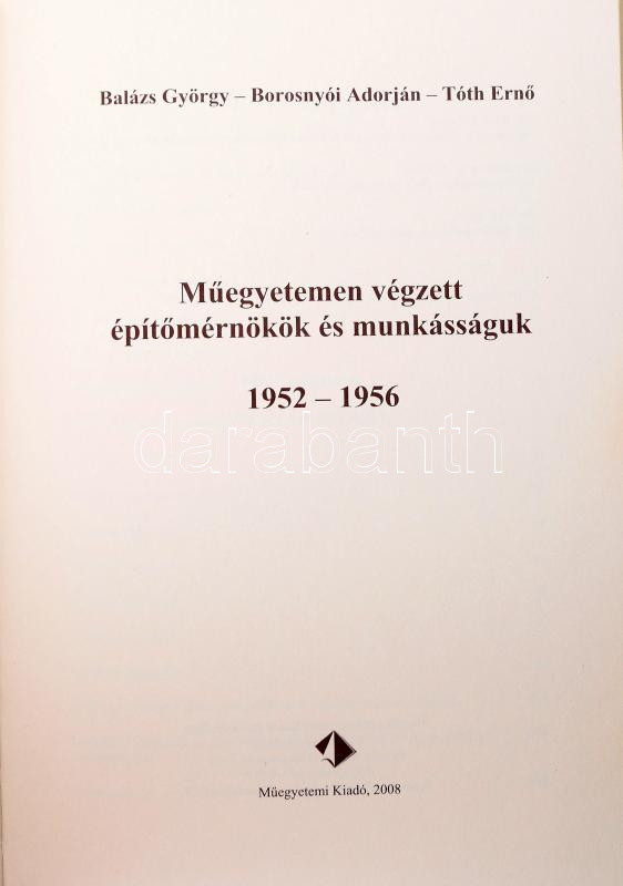 Műegyetemen végzett építőmérnökök és munkásságuk 1952-1956. Műegyetemi... https://www.darabanth.com/de/506-Fernauktion/506.0/Bucher/Bucher-Architektur-Kunst~616/Muegyetemen-vegzett-epitomernokok-es-munkassaguk-1952-1956-Muegyetemi-Kiado-2009-60~II3415725