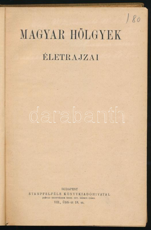 Endrődi Sándor: Magyar hölgyek életrajzai. Szerk.: - - . Pozsony-Bp., ... https://www.darabanth.com/de/506-Fernauktion/506.0/Bucher/Bucher-Geschichte~614/Endrodi-Sandor-Magyar-holgyek-eletrajzai-Szerk--Pozsony-Bp-en-Stampfel-Karoly-Eg~II3429122