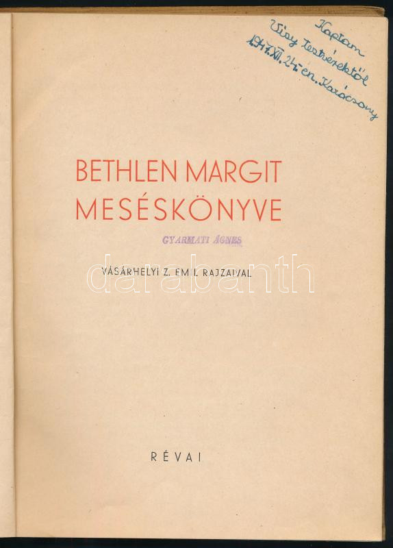 Bethlen Margit meséskönyve. Vásárhelyi Z. Emil rajzaival. Bp., 1940, R... https://www.darabanth.com/de/506-Fernauktion/506.0/Bucher/Bucher-Marchen~628/Bethlen-Margit-meseskonyve-Vasarhelyi-Z-Emil-rajzaival-Bp-1940-Revai-Felvaszon-kotes~II3429649