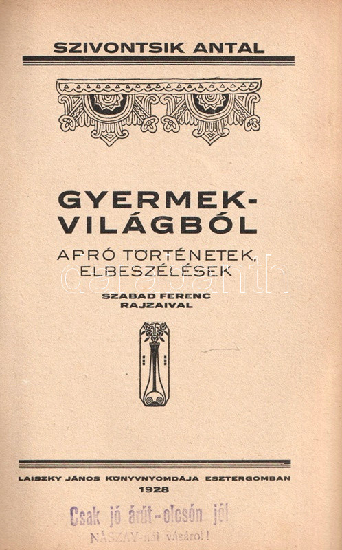 Esztergom, 1928. Laiszky János könyvnyomdája. 65 + [1] p. Egyetlen kiadás.
