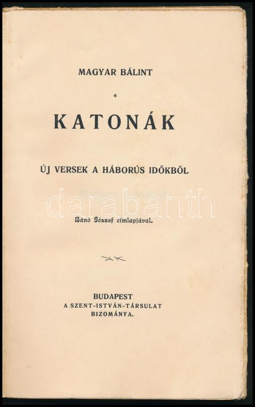 Magyar Bálint: Katonák. Új versek a háborús időkből. Bp., [1917], Szen... https://www.darabanth.com/de/506-Fernauktion/506.0/Bucher/Bucher-Militaria~615/Magyar-Balint-Katonak-Uj-versek-a-haborus-idokbol-Bp-1917-Szent-Istvan-Tarsulat-Un~II3434184
