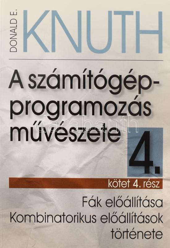 Donald E. Knuth: A számítógép programozás művészete 4. kötet 4. rész. Kovács Margit egyetemi tanár tiszteletpéldánya. Bp., 2008. Kiadói papírkötés, jó állapotban.