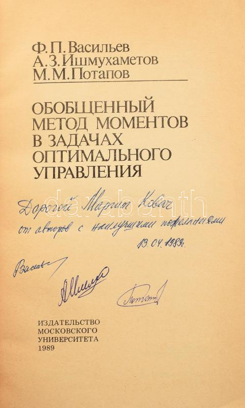 F. P. Vasziljev, A. Z. Ismuhametov, M. M. Potapov: Az általánosított momentumok módszere az optimális vezérlési feladatokban. DEDIKÁLT! Kiadói papírkötés, jó állapotban.