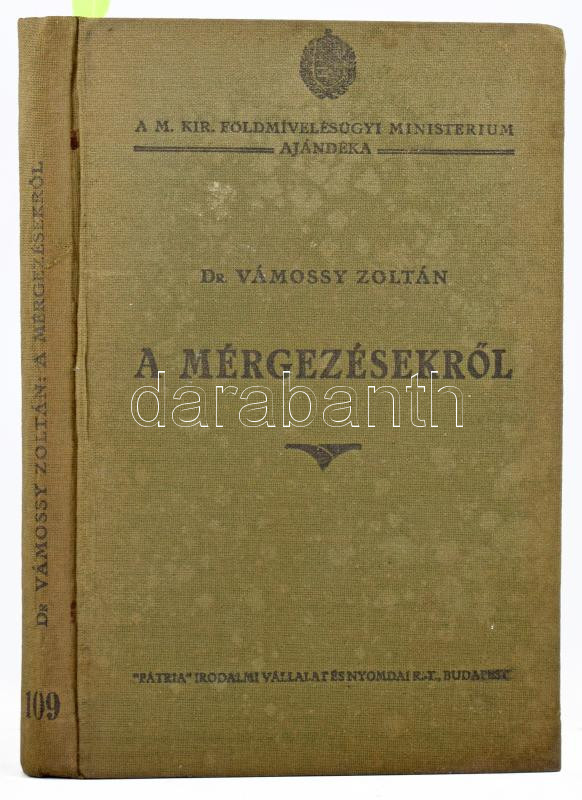 Vámossy Zoltán: A mérgezésekről. A nagyközönség számára. Az egészség könyvtára III. köt. Bp., 1907, Fraklin, 160+1 p.+2 (színes képtáblák) t. Szövegközti fekete-fehér illusztrációkkal. Kiadói foltos egészvászon-kötés.
