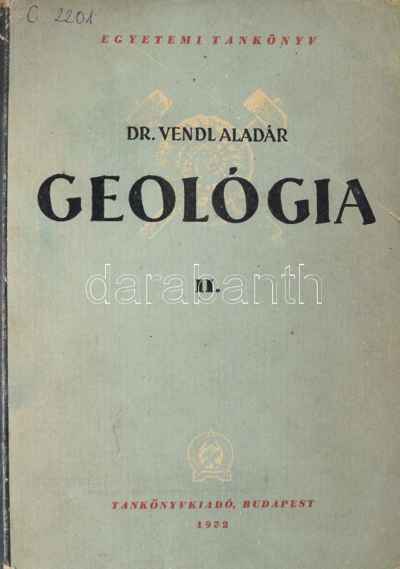 Vendl Aladár: Geológia II. Bp., 1952., Tankönyvkiadó, 559 p.+ L t. Kiadói papírkötés, kopott borítóval, sérült gerinccel, régi bélyegzésekkel.