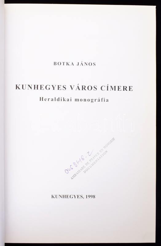 Botka János: Kunhegyes város címere. Heraldikai monográfia. Kunhegyes, 1998. 125p. Kiadói kartonált papírkrötésben