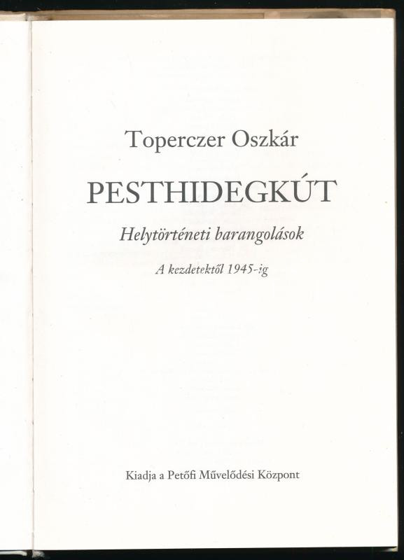 Toperczer Oszkár: Pesthidegkút. Helytörténeti barangolások. A kezdetek... https://www.darabanth.com/de/506-Fernauktion/506.0/Bucher/Bucher-Reise-und-Ortgeschichte~611/Toperczer-Oszkar-Pesthidegkut-Helytorteneti-barangolasok-A-kezdetektol-1945-ig-Bp-en-~II3417087
