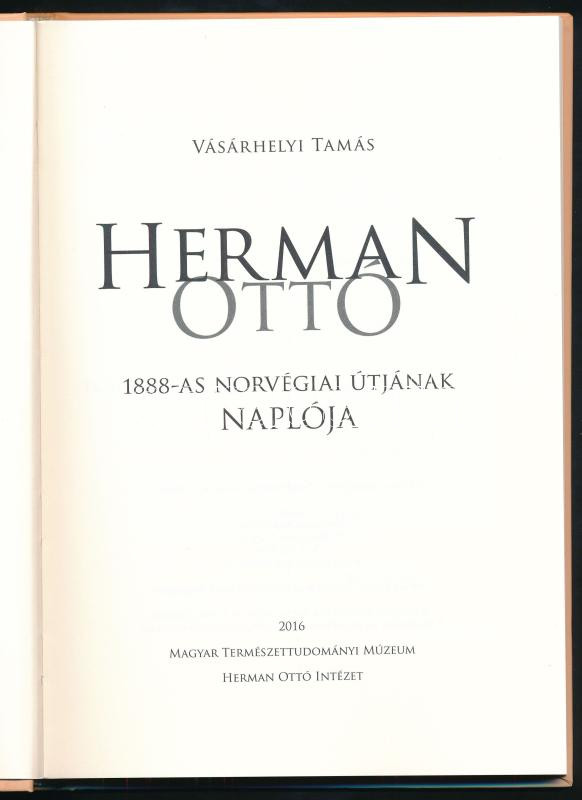 Vásárhelyi Tamás: Herman Ottó 1888-as norvégiai útjának naplója. 2016, Természettudományi Múzeum, Herman Ottó Intézet. Kiadói kartonált kötés, jó állapotban.