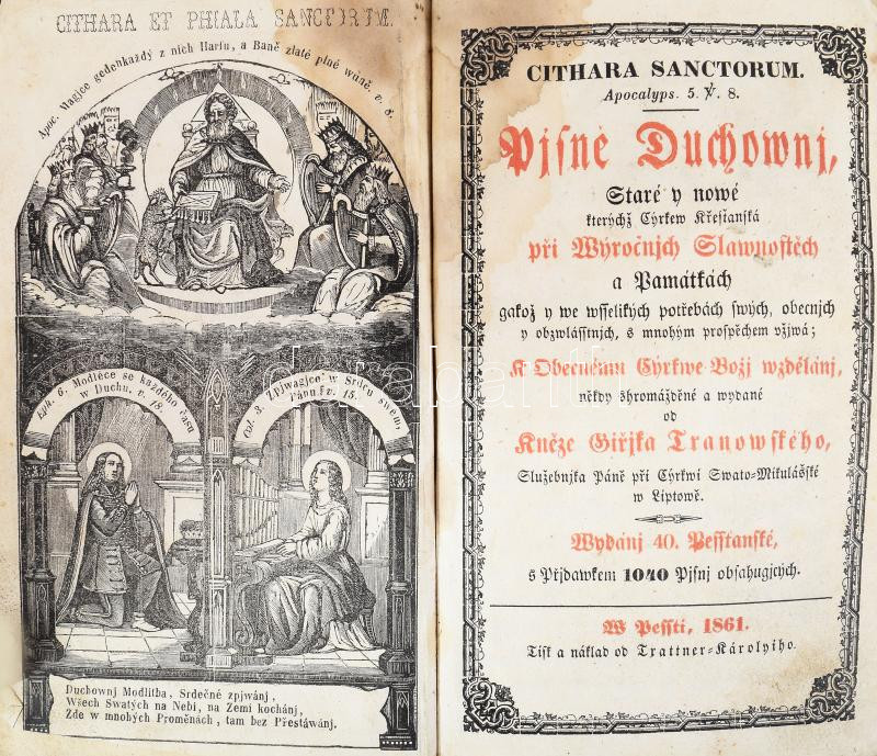 Pisné duchowni, staré i nowé/Pridawek pronikawych nowych i nekterych starych Pisni. Pest, 1861, Trattner. Bordázott gerincű bőr kötés fém veretekkel, kopottas állapotban.