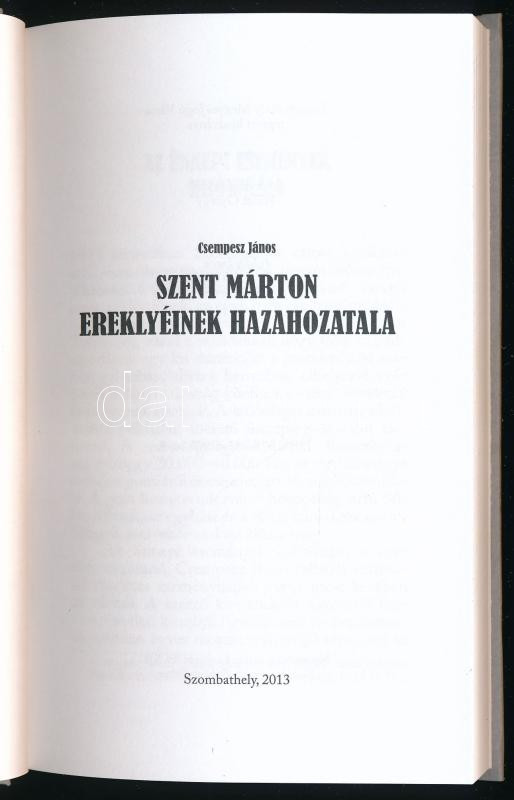 Csempesz János: Szent Márton ereklyéinek hazahozatala. Szombathely, 20... https://www.darabanth.com/de/506-Fernauktion/506.0/Bucher/Bucher-Religion~625/Csempesz-Janos-Szent-Marton-ereklyeinek-hazahozatala-Szombathely-2013-Szombathely-Megyei-JogC3~II3434522