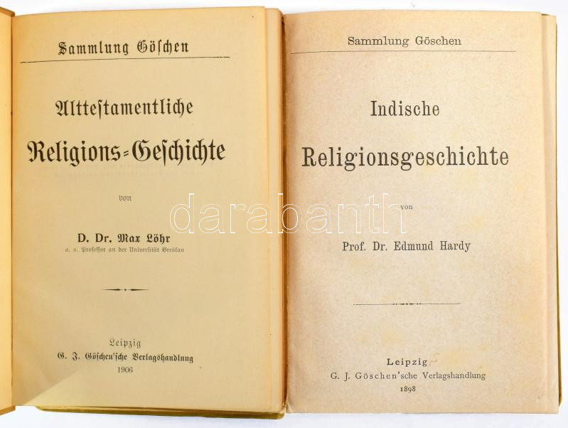 Max Löhr: Altetestamentliche Religions-Geschichte.; Leipzig, 1898-1906., G. J. Göschen. Német nyelven. Kiadói egészvászon-kötés, kissé kopott borítókkal.