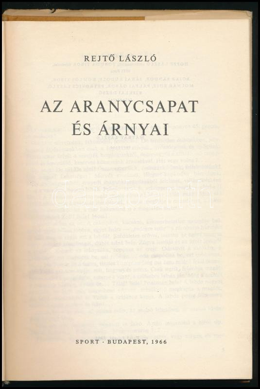 Rejtő László: Az aranycsapat és árnyai. Színes Sportkönyvtár. Bp., 1966, Sport, 153+(3) p.+ 8 t. Első kiadás. Kiadói egészvászon-kötés, jó állapotban, kissé viseltes, sérült kiadói papír védőborítóban.