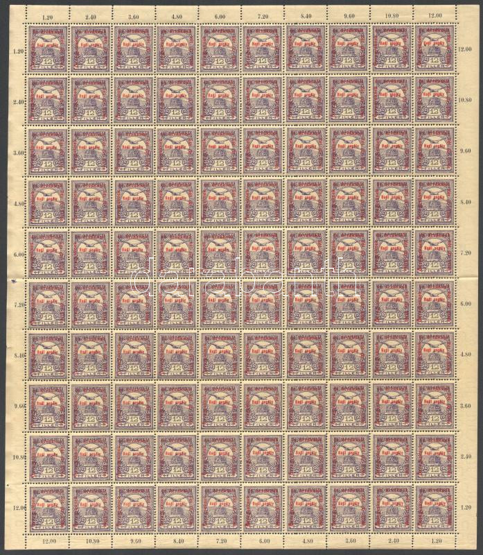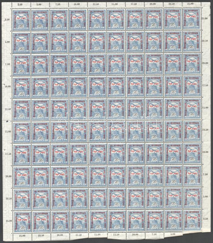 Beschreibung: 1915 Hadisegély (II.) 12f, 25f, 30f teljes 100-as ívekben (45.000)