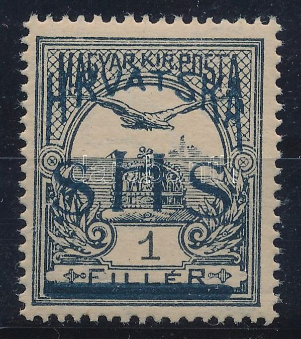 Beschreibung: SHS 1919 Turul 1f próbanyomat Bodor vizsgálójellel + Zrinjscak tanúsítvánnyal