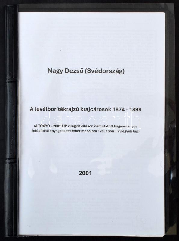 Beschreibung: Nagy Dezső (Svédország): A levélborítékrajzú krajcárosok 1874-1899 , a 2001-es FIP (Tokyo) kiállítás anyaga 157 fekete-fehér oldalon, német nyelven