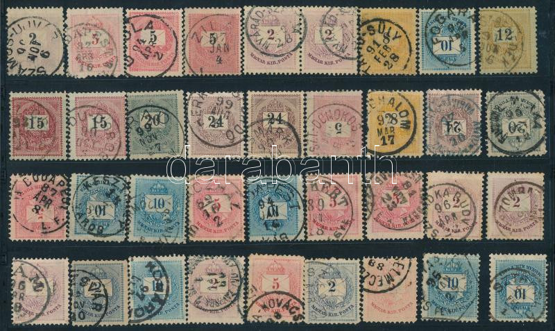Beschreibung: 36 db krajcáros bélyeg egykörös bélyegzésekkel