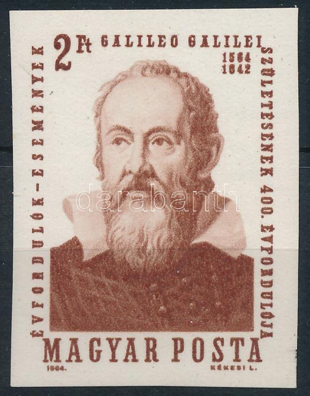1964 Évfordulók - események (II.) Galileo Galilei vágott bélyeg https://www.darabanth.com/de/506-Fernauktion/506.0/Erlesene-Lose-und-Sammlungen-Ungarn/Ungezahnte-Satze-Blocke-Gebotslose~2/1964-Evfordulok-esemenyek-II-Galileo-Galilei-vagott-belyeg~II3429637
