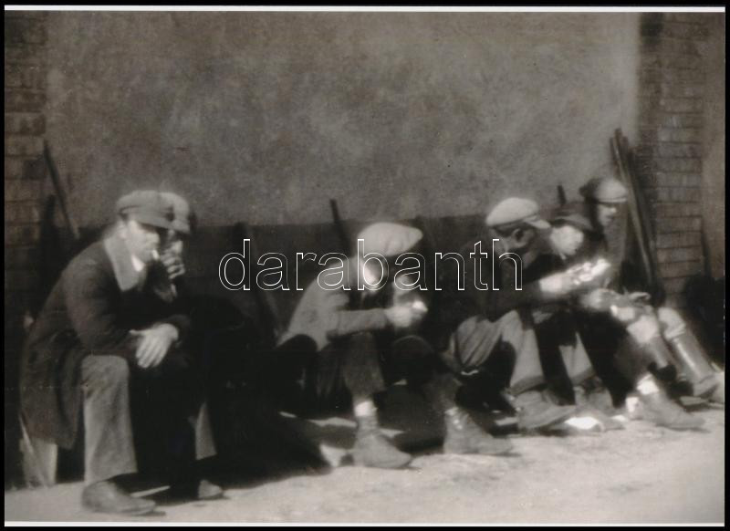 Beschreibung: cca 1937 Jermy László (1912-1960) budapesti fotóművész hagyatékából 1 db modern nagyítás (Munkára várva), jelzés nélkül, 15x21 cm