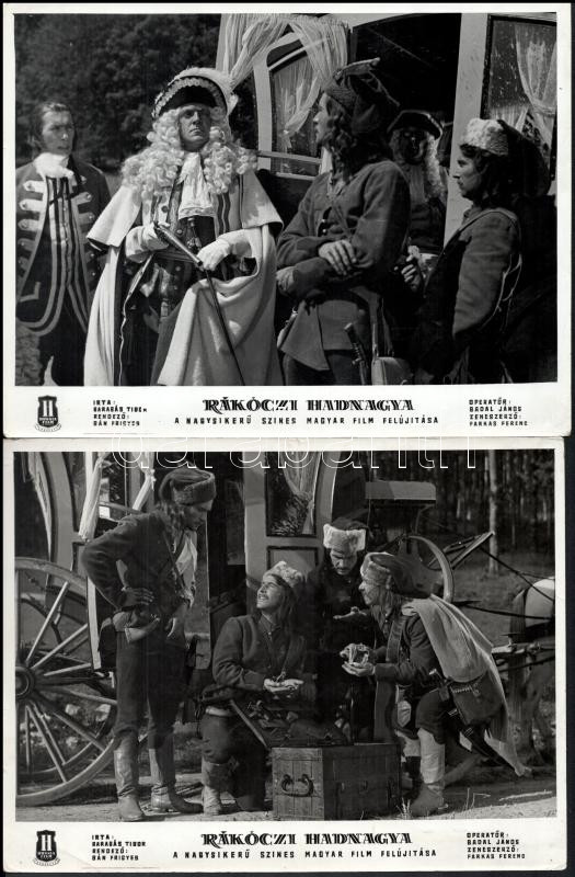 cca 1979 előtt készült, "Rákóczi hadnagya" című magyar film jelenetei és szereplői, 13 db vintage produkciós filmfotó (vitrinfotó, lobbyfotó) ezüst zselatinos fotópapíron, a használatból eredő (esetleges) kisebb hibákkal, 18x24 cm