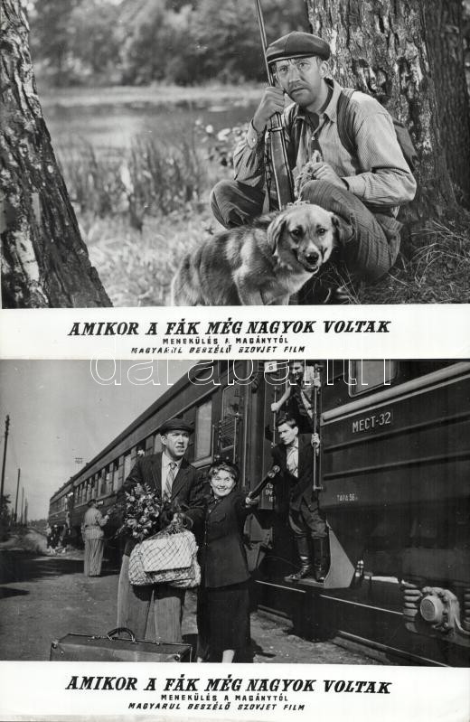 cca 1989 előtt készült, ,,Amikor a fák még nagyok voltak" című szovjet film jelenetei és szereplői, 19 db vintage produkciós filmfotó (vitrinfotó, lobbyfotó) ezüst zselatinos fotópapíron, a használatból eredő (esetleges) kisebb hibákkal, 18x24 cm