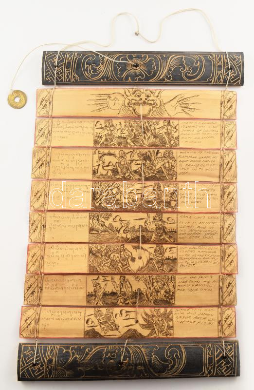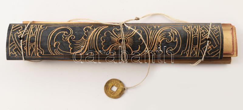 Beschreibung: Tibeti lontar, pálmalevél, 37x24 cm