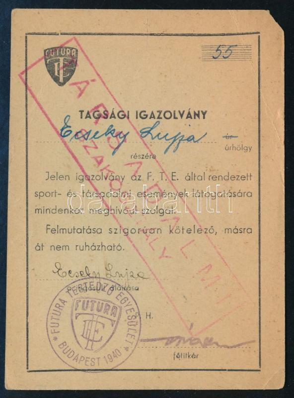 1940 Futura Testedző Egyesület tagsági igazolvány, "társadalmi sz... https://www.darabanth.com/de/506-Fernauktion/506.0/Kunst-Dokumente-andere-Sammelgebiete/Dokument~62/1940-Futura-Testedzo-Egyesulet-tagsagi-igazolvany-tarsadalmi-szakosztaly~II3432700