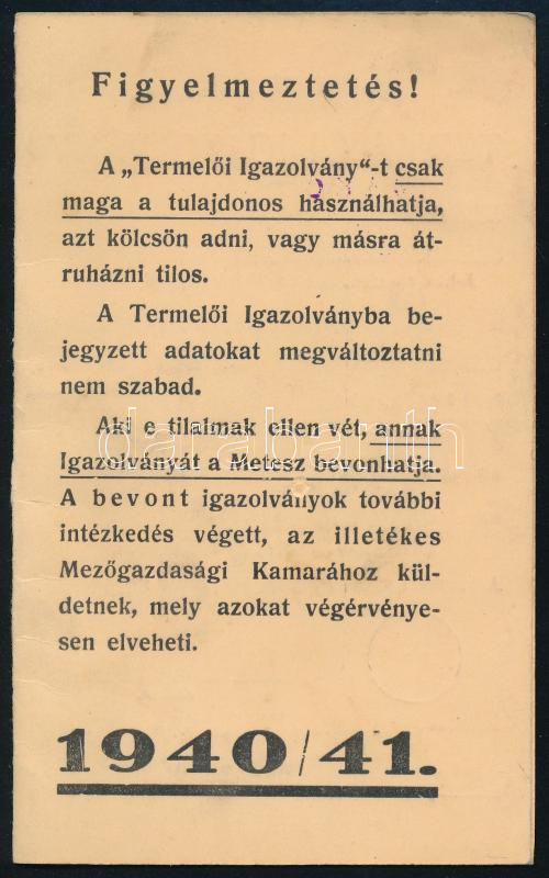 1940 Makó, vöröshagyma termelői igazolvány https://www.darabanth.com/de/506-Fernauktion/506.0/Kunst-Dokumente-andere-Sammelgebiete/Dokument~62/1940-Mako-voroshagyma-termeloi-igazolvany~II3432720