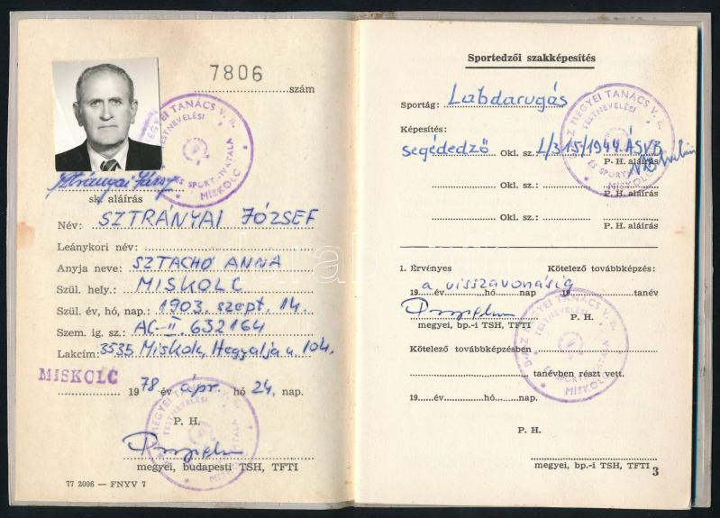 1978 Arcképes labdarúgó segédedzői igazolvány https://www.darabanth.com/de/506-Fernauktion/506.0/Kunst-Dokumente-andere-Sammelgebiete/Dokument~62/1978-Arckepes-labdarugo-segededzoi-igazolvany~II3430893