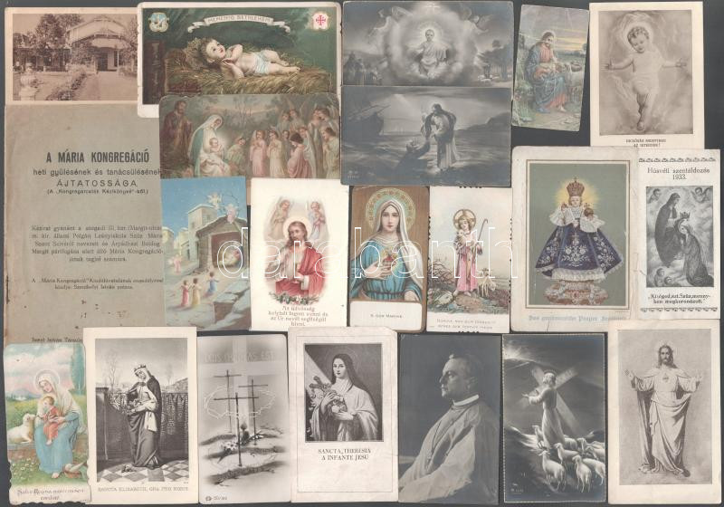 Beschreibung: 20 db vegyes szentkép, közte egy Prohászka Ottokárt ábrázoló + 1936 A Mária kongregáció heti gyűlésének és tanácsülésének ájtatossága, 12 p.