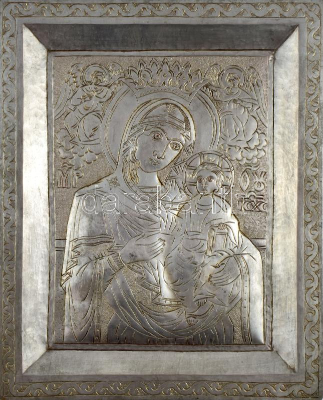 Mária a kis Jézussal, ezüstözött rézlemez ikonmásolat, 25x20 cm https://www.darabanth.com/de/506-Fernauktion/506.0/Kunst-Dokumente-andere-Sammelgebiete/Flohmarkt~641/Maria-a-kis-Jezussal-ezustozott-rezlemez-ikonmasolat-25x20-cm~II3429845