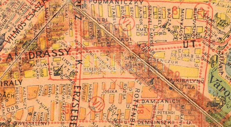 1940 Budapest északi részének térképe, 1 : 75.000, M. Kir. Honvéd Térképészeti Intézet, sérülésekkel, kissé foltos, ragasztott, 46x60 cm + Budapest legújabb térképe, felelős kiadó: Stoits György, hátoldalán utcajegyzékkel, sérült, ragasztott, 62,5x49 cm